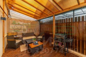 Крыша деревянная, двускатная, утеплена минватой. Установлены качественные энергосберегающие стеклопакеты.