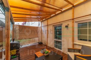 За домом: терраса - место для отдыха всей семьей. Место для барбекю, место для установки шатра.