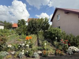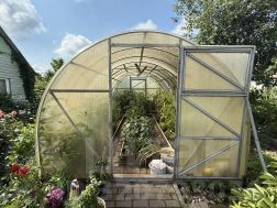 Земельный участок ухожен. Посажены плодовые деревья (яблоки, персики) и ягодные культуры (ежевика, малина, смородина, черешня, жимолость, клубника, вишня и т.д.), большое количество цветов (гортензии, розы, пионы и т.д.). Имеется теплица для раннего выращивания овощных культур.