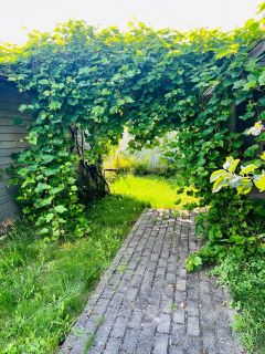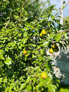 - много плодово-ягодных деревьев и кустов: груша, черешня, вишня, слива, калина, яблони, грецкий орех, виноград "Изабелла", смородина красная, чернослив;