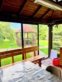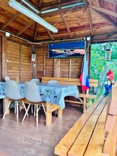 - летняя кухня-терраса с кухонным гарнитуром, газовой плитой, водонагревателем, столом и лавочками, инфракрасным обогревателем;