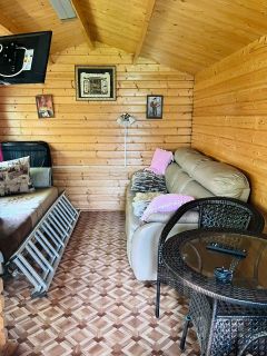 - два дачных домика, в одном из них: два раскладных дивана, холодильник, инфракрасный обогреватель, телевизор, во втором-две новые кровати с матрасами;