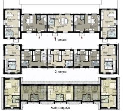 Таунхаус общей площадью 110.4 кв. м представлен в 3-х этажах:
