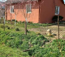 Территория огорожена, много плодовых деревьев, персики, черешни, вишни, сливы, яблони и др.