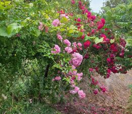 Есть огород и теплица, много цветов.