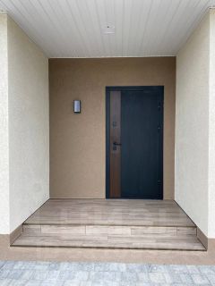 Во дворе тротуарная плитка, крыльцо и терраса выложены керамической плиткой, освещение.