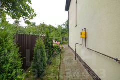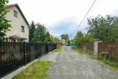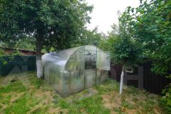 Участок правильной квадратной формы, сухой и ухоженный, с теплицей и хозяйственными помещениями размером 31,5 м. Парковка рассчитана на три автомобиля, подъездные пути качественные, без ограничений для транспорта.
