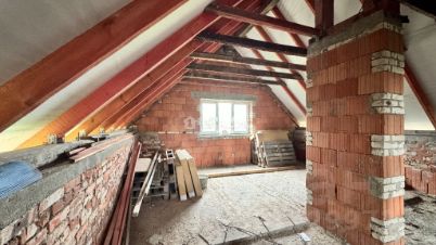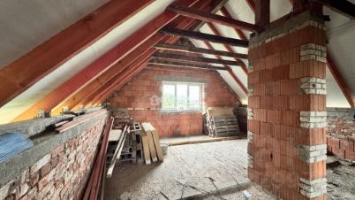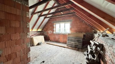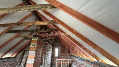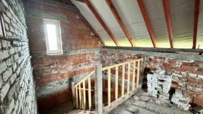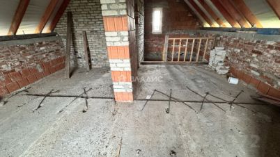 В доме 3 мансардных окна, не установлены. Верхний этаж свободной планировки, новый хозяин сам выберет место установки окон. Санузлы большие, на 1 и 2 этаже. Есть капитальное 6,24 метров (из ж/б плит, смонтированных на ФБС с монолитной лентой) основание под веранду, при желании послужит основанием под пристройку.