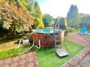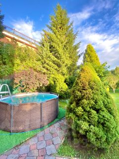 Утопающий в зелени благоустроенный участок с бассейном