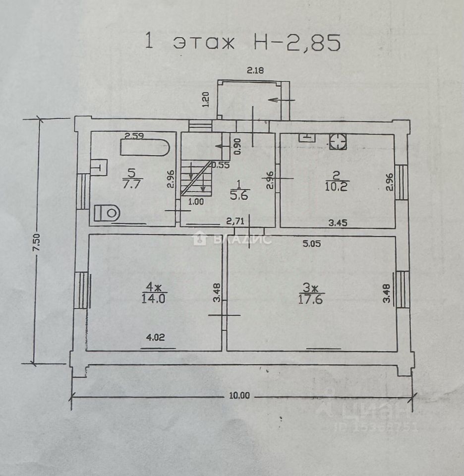 Дом построен в 1956 году из кирпича, имеет два этажа, подвал (15,2 кв.м.) и общую площадь 91,1 кв. м. Жилая площадь составляет 58,9 кв. м, а площадь кухни — 10,2 кв. м. В доме четыре комнаты с площадями 10,6 кв. м, 17,3 кв. м, 17 кв. м и 14 кв. м соответственно. Высота потолков — 2,85 м, что создаёт ощущение простора и свободы.