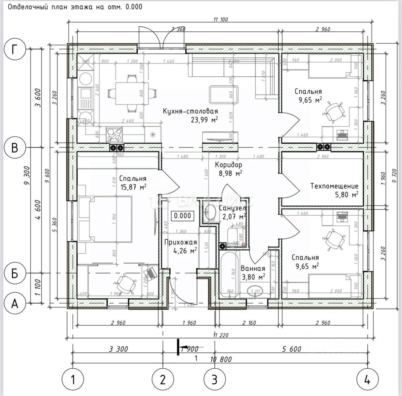 3 спальни Кухня-гостиная 24 кв.м. Техническое помещение 2 ванных комнаты