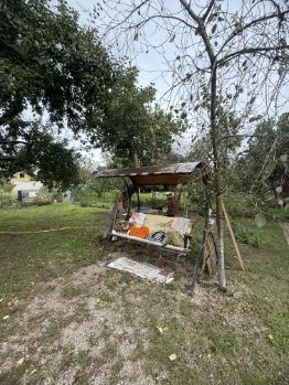Большой участок, есть беседка для вечерних посиделок, качели.