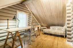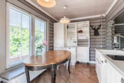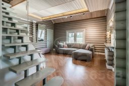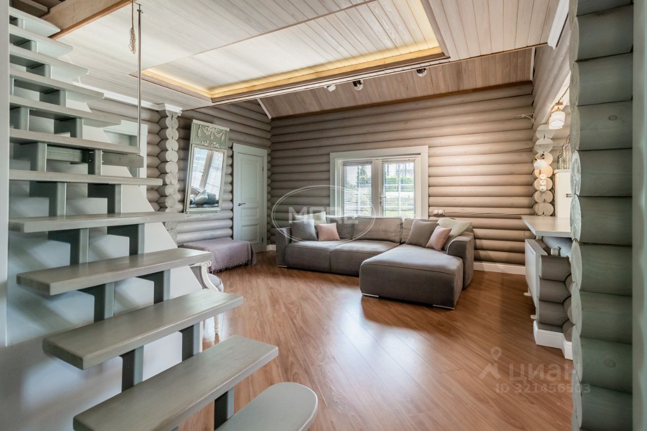 Дом построен в 2014 году из оцилиндрованного бревна 200 мм, что гарантирует его долговечность и экологичность. Высота потолков — 3 метра, что создаёт дополнительное ощущение простора. В доме пять комнат, общая жилая площадь составляет 71,1 кв. м, а площадь кухни — 10 кв. м, с выходом на просторную террасу. Комнаты имеют удобную планировку: 20,1 + 10,6 + 6,5 + 17,6 + 16,3 кв. м.