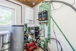 На участках общей площадью 20 соток подведены все необходимые коммуникации: электричество, водоснабжение (скважина, есть возможность центрального водопровода), газ, автономная канализация (объемом 1500 л). Отопление обеспечивается индивидуальным котлом, что позволяет регулировать температуру в доме по своему усмотрению.