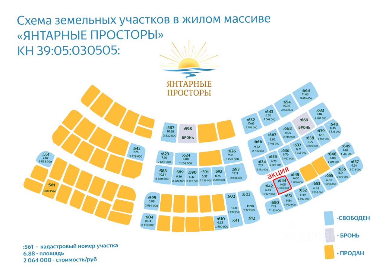Кадастровый номер 39:05:030505:644 - 6.05 соток.