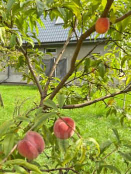 На участке растут плодовые деревья (яблоня, груша, персик, вишня) теплицы. Также имеются хозяйственные строения, где можно хранить садовый инвентарь и прочую технику.