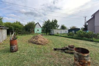 Площадь участка 10 соток. Сухой, ровный, ухоженный, правильной формы. Огорожен (стобы / сетка рабица). Металлические ворота с калиткой. Колодец. Плодовые деревья.