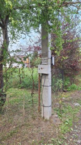 На территории участка расположен кирпичный домик (отапливаемый). Площадь 10м2 + веранда. Электричество подведено, 5 кВт (можно увеличить), счётчик на столбе. В комнате 2 окна, стеклопакеты.