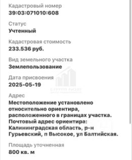 Уникальное предложение для тех, кто мечтает о собственном доме! Продаётся земельный участок в Гурьевском муниципальном округе, посёлок Высокое, на Балтийской улице.