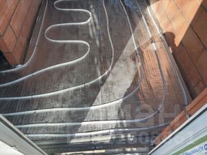 Перекрытие - монолитная плита. Стены утеплены пенополистиролом -100мм, армирование сеткой, фасадный клей, нанесена моющееся декоративная штукатурка.