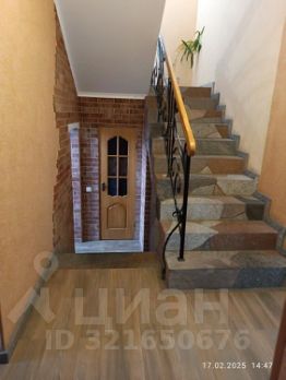Лестница на второй этаж отделана натуральным гранитом. Перила кованые, поручни из дуба.