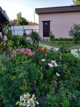 Гараж оборудован большим сухим подвалом. На участке растут яблони, груши, черешни, вишни, виноград, цветы и кустарники. Дорожки вымощены натуральным камнем и плиткой.