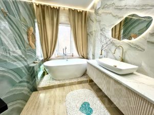 1. Мастер-спальня 16 м2 +санузел 7м2 с отдельно стоящей каменной ванной+гардеробная 7м2.