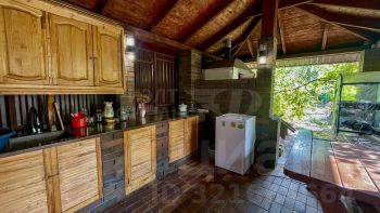 На первом этаже располагается гостинная комната, современная кухня и сан.узел с душевой кабиной.
