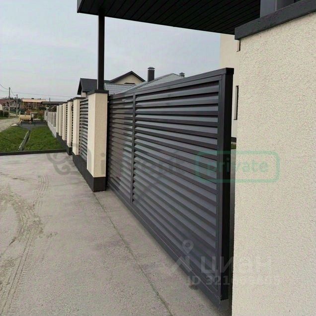 Благоустроенная территория, стильный забор и откатные ворота с электроприводом.