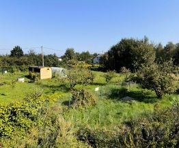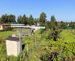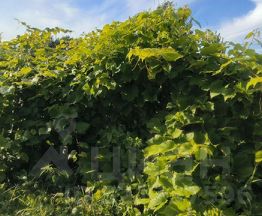 Также есть три столба для забора и затеняющая сетка на весь участок. На участке растут яблоня, виноград, калина, малина и ежевика.