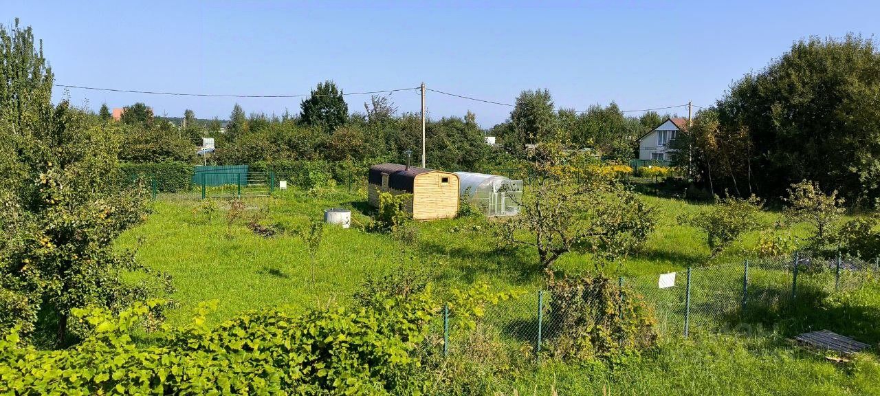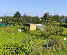 Участок ровный, сухой, правильной прямоугольной формы 20 х 30 метров. Он огорожен забором, есть въездные ворота и хорошая подъездная дорога.