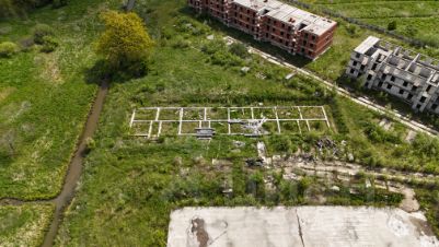 На участке: 2 четырехэтажных недостроя + 2 готовых котлована под следующие очереди. Значительная экономия на нулевом цикле.