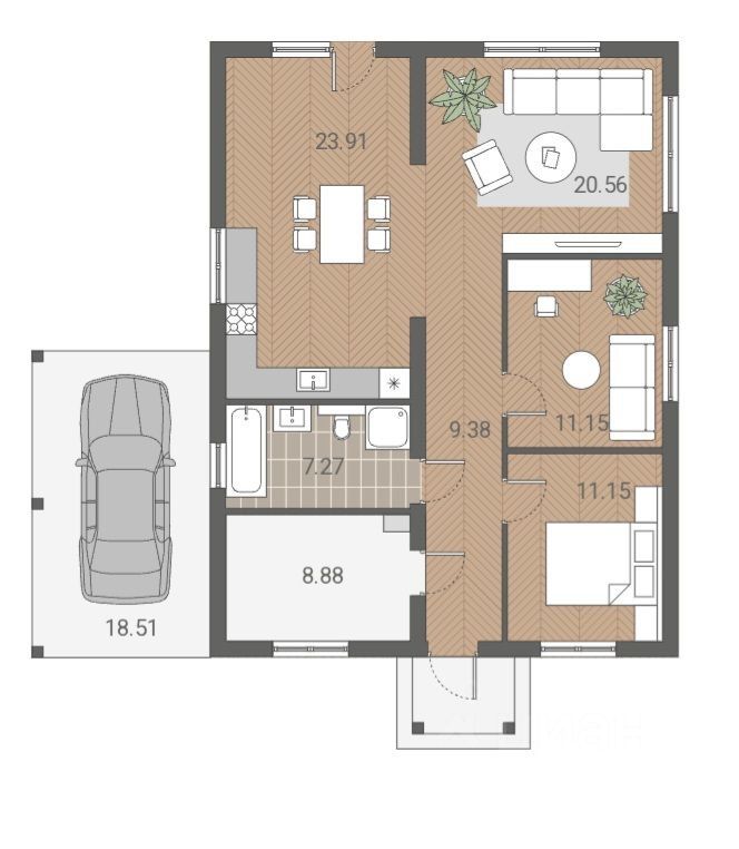 Две спальни — по 11 м²