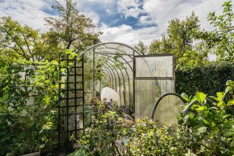 - Баня, теплица и хозяйственный сарай дополняют функциональность пространства.