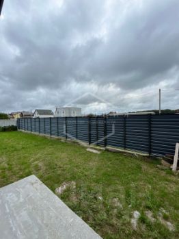 Дом расположен на земельном участке 10 соток в собственности. Территория дома полностью огорожена по границе участка. Участок абсолютно сухой, правильной формы и не собирает воду.