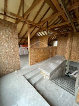 Дом представлен в отделке "серый ключ". Здесь можно воплотить ваши любые дизайнерские идеи. Межкомнатные стены не возведены - свободная планировка на обоих этажах. Дом имеет простой, вместе с тем, брутальный и основательный вид, демонстрируя прочность и долговечность.