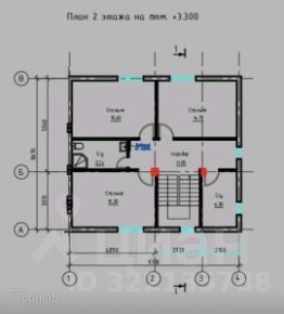 на втором этаже расположены 3 спальни и 2 сан. узла;