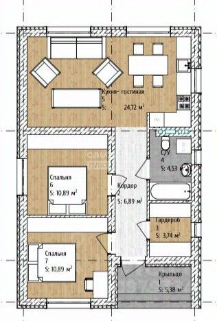 В продаже новый дом 67,6м. кв. на участке 4,6 сотки земли с