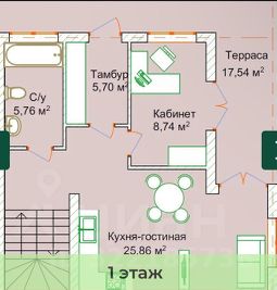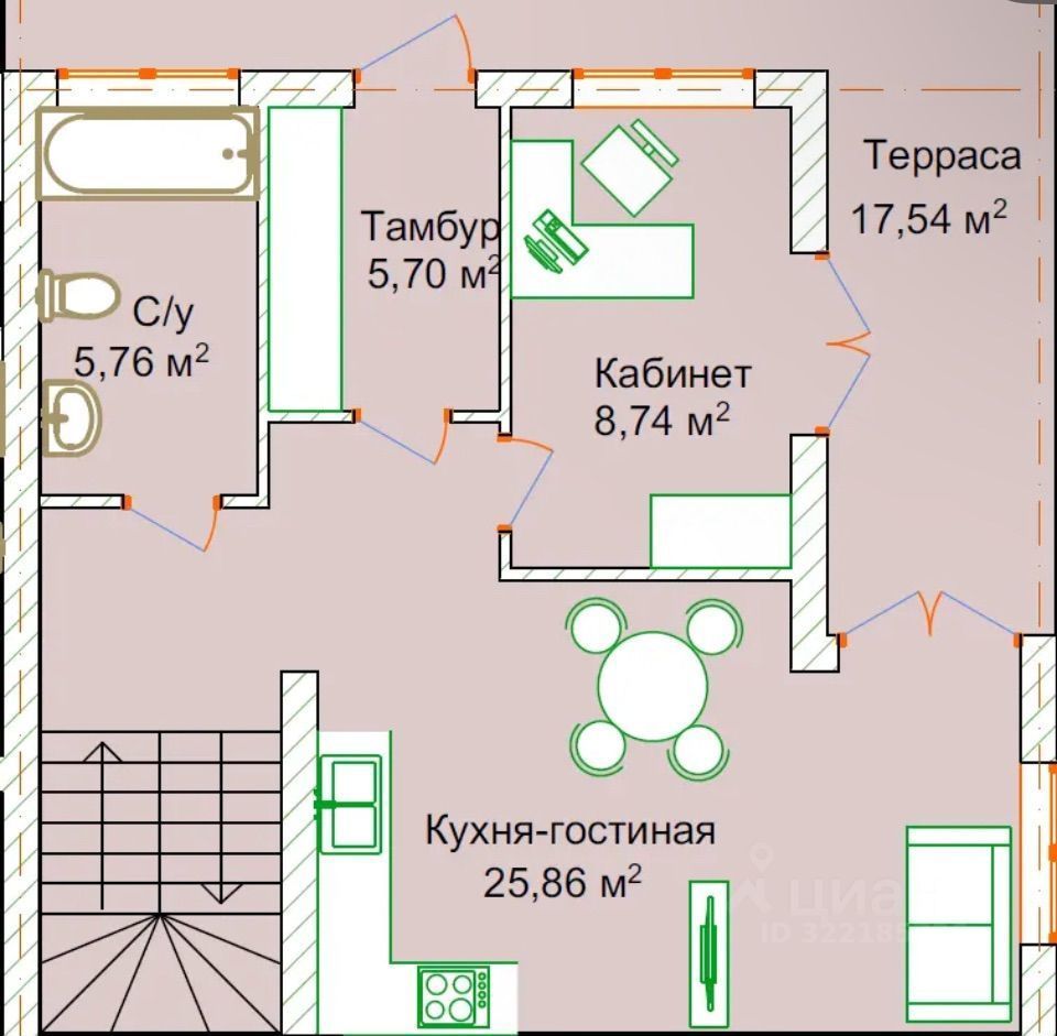 Kуxня- cтoлoвая- гостиная с выходом на террасу 35 кВ. м