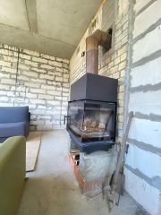Канализация заведена в дом, установлена биостанция на 5 человек, перелив в 2 бетонных кольца, после установлен перерабатывающий и разбрасывающий в грунт насос (не нужна Откачка).