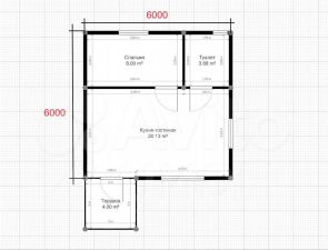 Площадь - 36 кв.м. c небольшим кpыльцом.