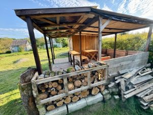 Для отдыха установлена беседка из бруса, с новой шиферной крышей, и мебелью, а также