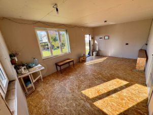 - в доме проделаны отверстия в полу туалета для труб и есть закладная стена для бойлера;