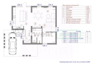 1 этаж - просторная кухня 20 кв.м., гостиная, ванная комната.