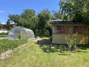 На участке 15 соток расположены ухоженный сад с плодово-ягодными насаждениями (грецкий орех, абрикос, персик, ирга, черешня, вишня, яблоня, слива, малина, смородина, крыжовник, виноград) и теплица. Также, на участке расположен уютный домик с большой беседкой.