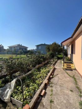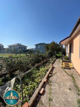 Дома стоит на участке с плодовыми кустарниками и деревьями.