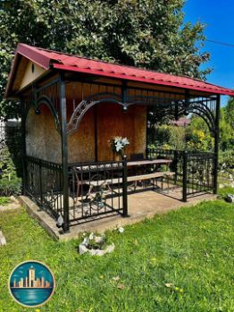 Во дворе красивая кованная беседка, где можно отдыхать.