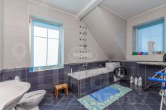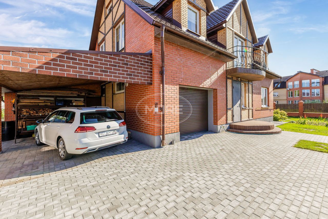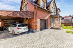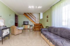 На первом этаже расположены большая гостиная с камином и выходом в зимний сад, находящийся на солнечной стороне, просторная кухня и санузел. Также из дома есть выход в гараж на 2 автомобиля, Пол с подогревом по всему этажу.