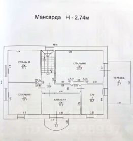На втором этаже четыре спальни и санузел, одна из комнат имеет выход на террасу.