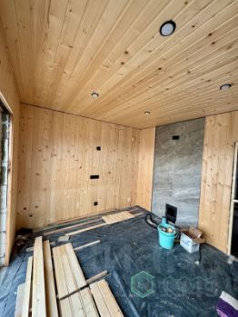 В продаже стильный одноэтажный дом 120 м2, серый ключ, многие работы по отделке выполняются. Высокие потолки, водяной теплый пол, высокий конёк на мансарде позволит сделать полноценный жилой 2 этаж (перекрытия- бетонные плиты), менять функциональность помещений, приспосабливая их к потребностям семьи.